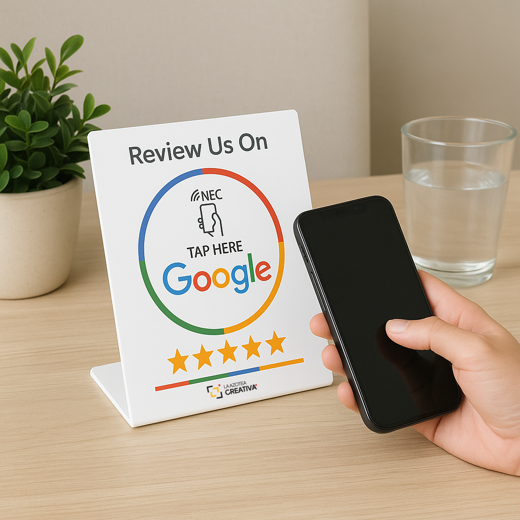 Transforma cualquier espacio en una experiencia interactiva con nuestro soporte inteligente con tecnología NFC. Solo basta acercar un smartphone y ¡voilà! Tus clientes acceden al instante al sitio web de tu negocio, sin códigos QR ni aplicaciones.
